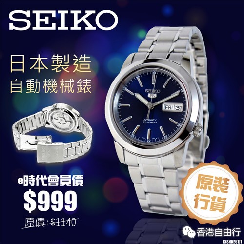 【原装行货】精工自动机械表香港e时代独家购物优惠:$999/只 (原价:$1140/只)