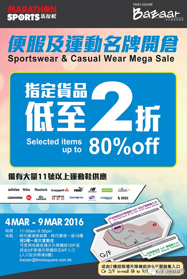 香港打折:时代广场 Bazaar 便服及运动名牌开仓(2016年3月4至9日)