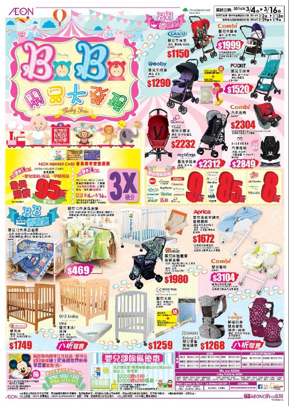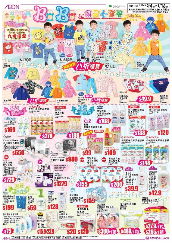 香港打折:AEON(永旺)至潮BB服装、奶粉、用品购物优惠(至16年3月16日)