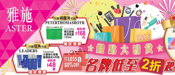 香港打折:雅施最新店内化妆品购物优惠(16年3月4日至3月17日)