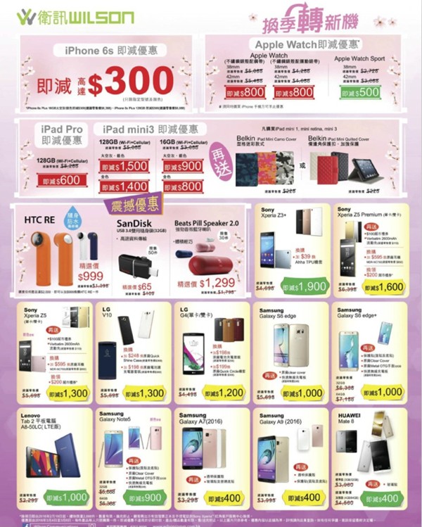 香港打折:卫讯最新手机优惠(至16年3月6日)