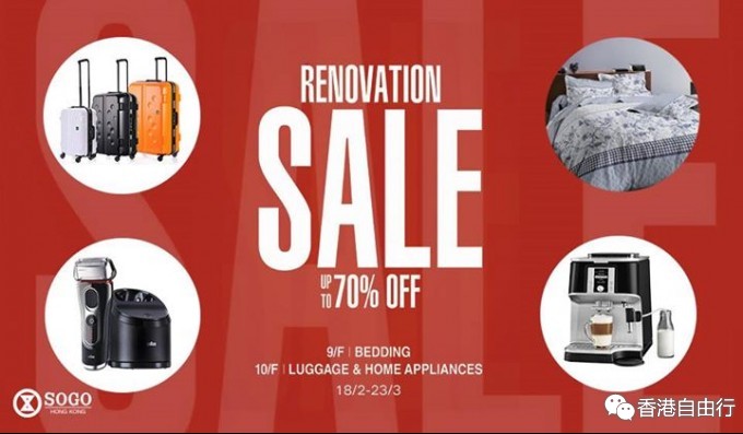 香港打折:SOGO崇光百货铜锣湾店9/F及10/F装修减价购物优惠(至16年3月23日)