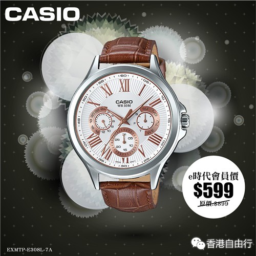 卡西欧手表e时代会员优惠价低至$599/只 (原价:$899/只)