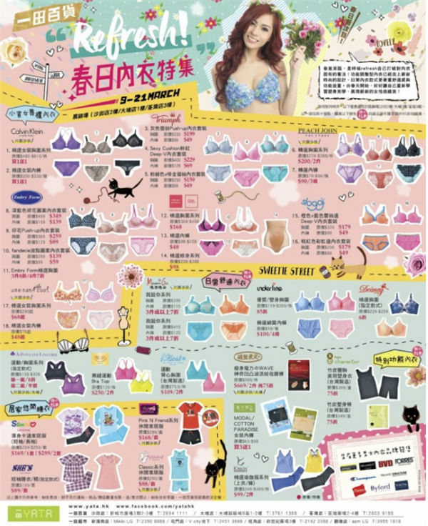 香港打折:一田百货YATA 春日内衣特集优惠(至16年3月21日)