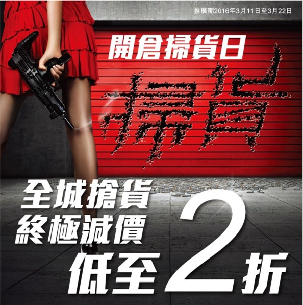 香港打折:先施百货开仓扫货日低至2折优惠(至16年3月22日)
