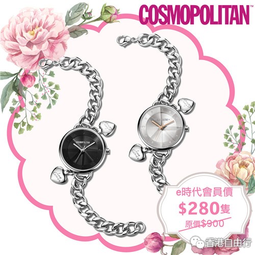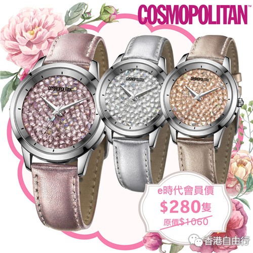 COSMO手表是由美国COSMOPOLITAN时尚杂志授权的时尚手表品牌,其设计时尚,个性鲜明,绝对是潮流的代表。手表用料名贵,日本原装进口石英机芯,表身採用不锈钢材质,镶嵌SWAROVSKI水晶,效果更为闪烁,而且还具有30米的生活防水性能。