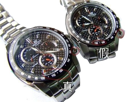 1. 正品CASIO手表外表盘数字刻度印刻的工整清晰,而仿品的外表盘数字就显得有些粗糙,有些仿品甚至很粗糙。