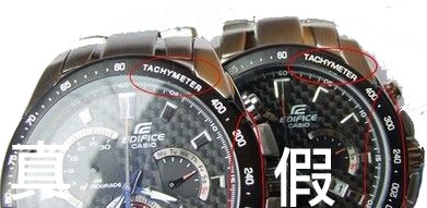 9. CASIO真品手表的表圈文字细緻清晰,而高仿手表的表圈文字稍显粗糙模糊,细緻观察可以分辨。