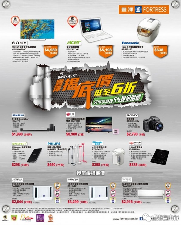 香港打折:丰泽FORTRESS揭底价低至6折(优惠时间:3月每周五六日)