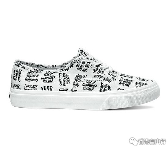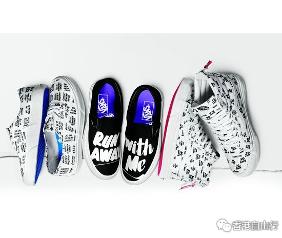 本季女生鞋款特别邀请到来自纽约的多媒体艺术家Baron Von Fancy(Gordon Stevenson)合作推出三双鞋款。Slip-On简单的鞋型无疑是最适合Von Fancy进行创作的载体。本次推出的Slip-On设计,鞋面采用全黑帆布材质,配以白色大底,给人鞋身轻质的感受,与“Run Away With Me”的语句颇为相符。而Authentic和Sk8-Hi Slim Zip鞋身则采用全白帆布材质,配以Von Fancy标志性的印刷标语设计。