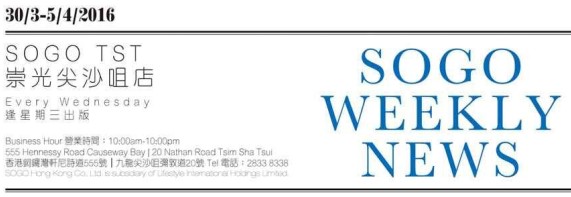 香港打折:sogo崇光百货尖沙咀店本周最新购物优惠(16年3月30日至4月5日)