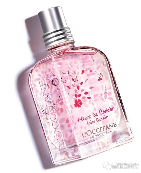 每年都推出樱花香气产品的L'occitane,今年当然也不例外推出限量版樱花果香淡香氛。玻璃瓶上雕有樱花树枝枒形状和印上桃红色花瓣,和粉红色的香水相当合衬。香水以佛手柑、蜜柑为初调,配合樱花、玫瑰与紫罗兰的中调,在加上麝香基调,混合出清新自然的春日香气。