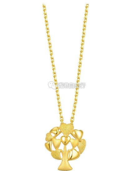爱情树造型的黄金吊坠,喻意树上结出爱情的果子。
