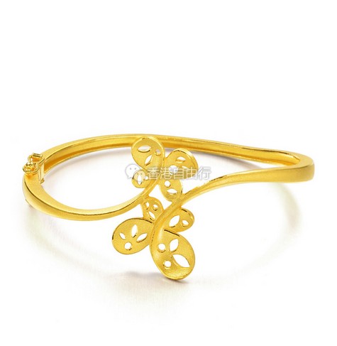 黄金通花蝴蝶造型的手镯线条优美,层次分明,适合婚嫁或日常佩戴。