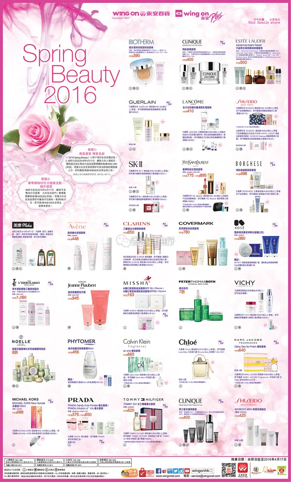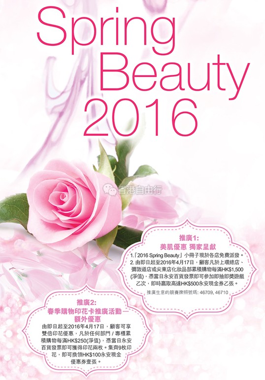 香港打折:永安百货化妆品第二波独家购物优惠(至16年4月17日)
