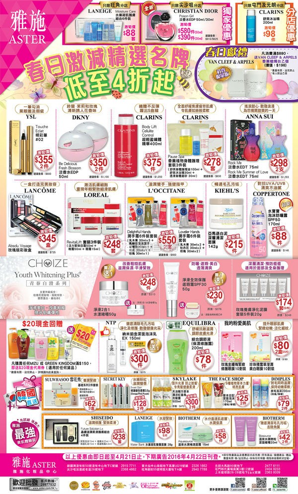 香港打折:雅施最新店内化妆品购物优惠(16年4月21日)