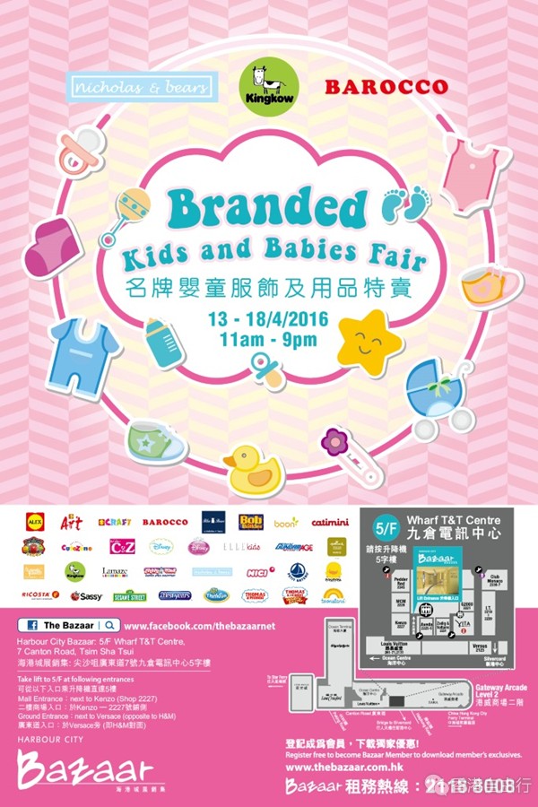 香港打折:海港城 Bazaar名牌婴童服饰及用品特卖(2016年4月13至28日);