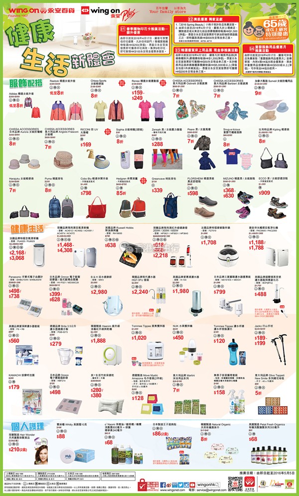 香港打折:永安百货健康生活新体会购物优惠 (至2016年5月5日)