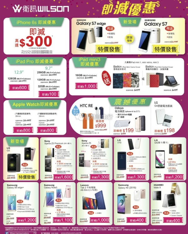 香港打折:卫讯店内最新手机购物优惠(至16年4月21日)