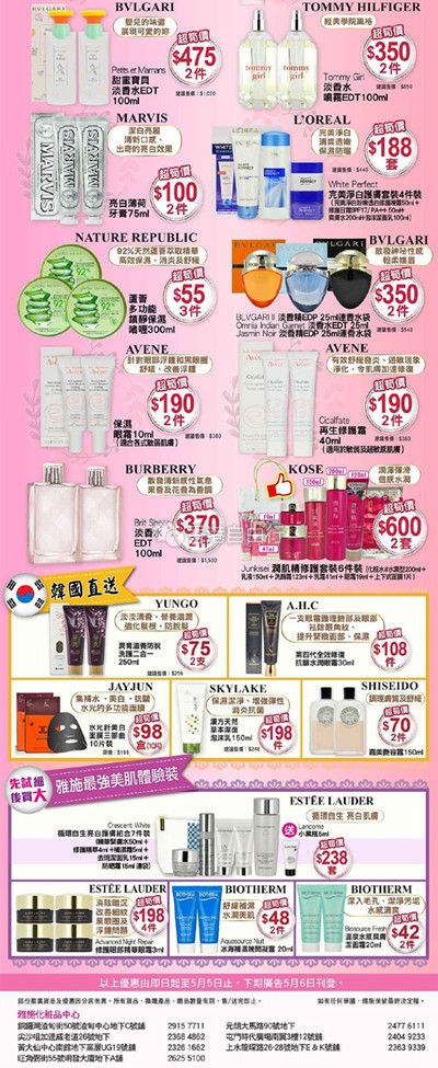 香港打折:润膏75两支,芦荟胶55三件!雅施迈向45载感谢月低至3折起 最新店内优惠(至16年5月5日)