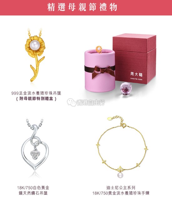 看了这么多款式,挑中喜欢的了吗?妈妈不管是戴黄金还是珍珠手链,亦或是红宝石项链都非常漂亮喔!快点到香港周大福选购吧!