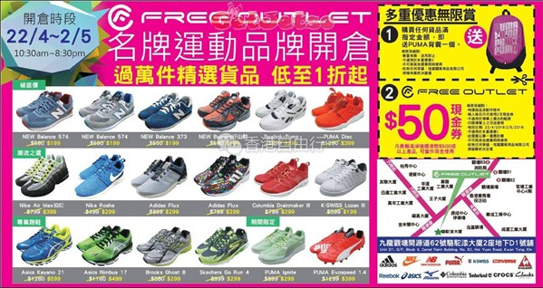香港打折:名牌运动品牌低至1折开仓优惠(至16年5月2日);