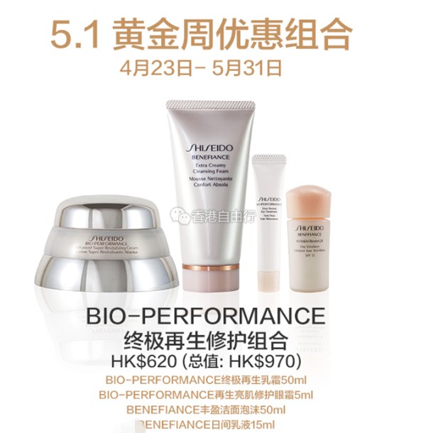 香港打折:资生堂SHISEIDO 五一黄金周限定尊贵套装优惠(至5月31日)