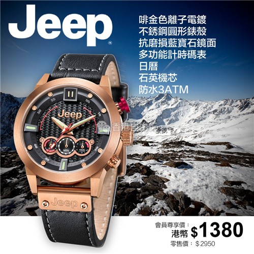 美国品牌JEEP 手表香港e时代会员尊享优惠$1380/只(原价:$2950)
