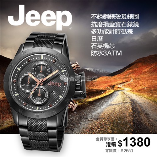 美国品牌JEEP 手表香港e时代会员尊享优惠$1380/只(原价:$2250)