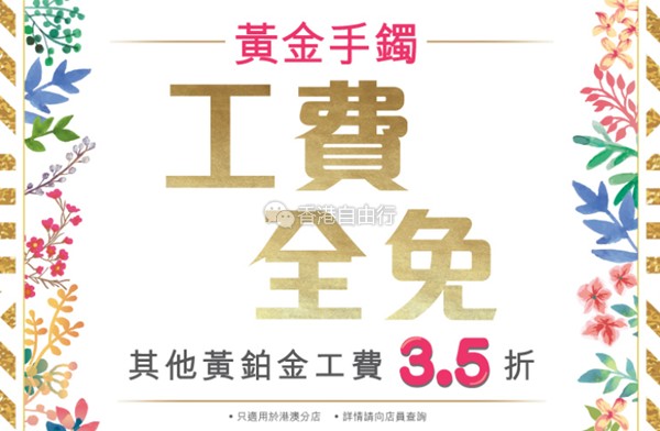 五一去香港婚前采购最好不过了,六福珠宝近日推出优惠,黄金手镯工费全免,其他黄铂金工费3.5折,只限港澳分店。