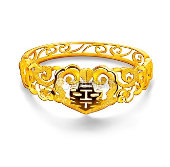 「幸福真爱」黄金手镯将乘云而来的飞龙舞凤,配合中央镌刻著的「爱」字,映衬出龙凤飞舞的灵动多姿,祝愿婚姻生活的美满。
