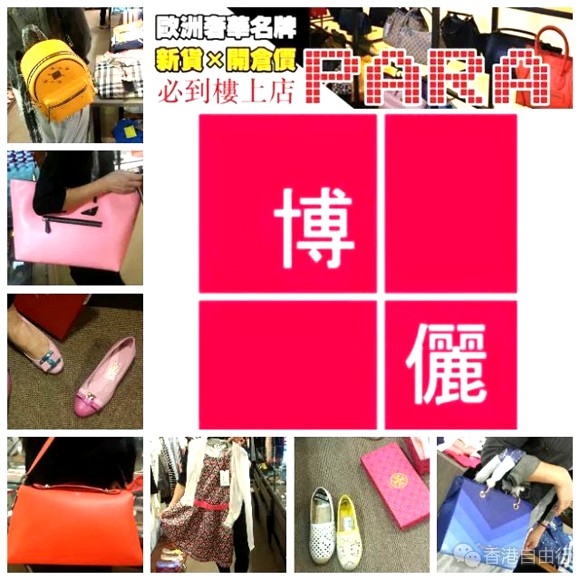 PARA是香港最主要的名牌批发商之一,拥有30年批发零售奢华名牌的经验,专营国际高级名牌如(COACH、MK、TB、FENDI、MCM、FURLA、VALENTINO、FURLA、Ferragamo、Burberry、Bottega Venetta、GUCCI、GIVENCHY)等50多个大牌,店内近千款货品3折起!