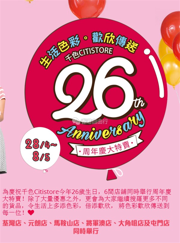 香港打折:千色CITISTORE26周年庆大特卖 超多化妆品套装、男女服饰、母亲节精彩优惠等着你!