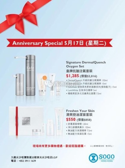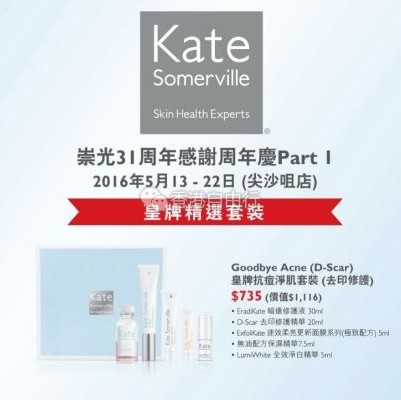 2016【SOGO店庆】崇光31周年庆 kate somerville皇牌精选套装(尖沙咀店优惠)