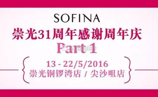 半年一度、万众期待的崇光31周年感谢周年庆来了!由5月13日至22日期间,第一击优惠推出崇光铜锣湾店及尖沙咀店只限一天的独家超值套装!正价货品九折外,更推出多款必买组合!
