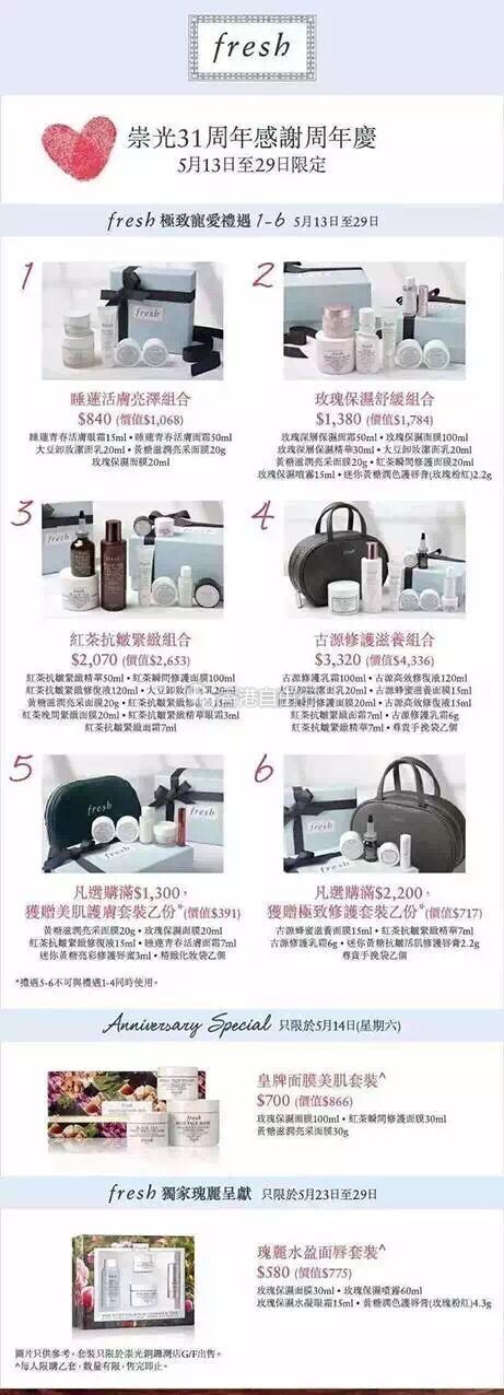 崇光SOGO店庆Fresh(馥蕾诗)护肤套装优惠(含套装详情及价格)