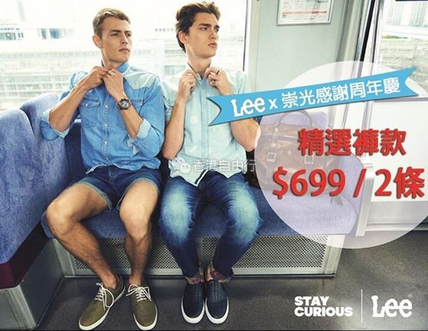 即日起亲临铜锣湾祟光百货Lee专门店,即可享*限定优惠价 $699 购买精选男女装裤款2条!