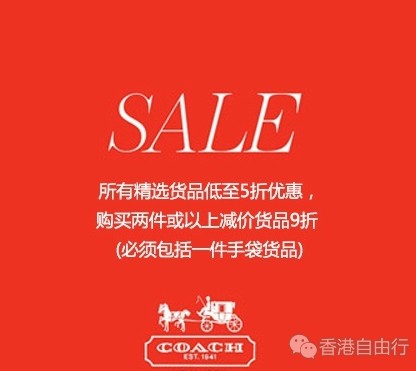 阳光明媚,折扣给力,你还有理由不出门逛逛吗!即日起,COACH所有精选货品低至5折优惠,购买两件或以上减价货品(需要包括一件手袋货品),更可享额外9折优惠!现在不出手更待何时?