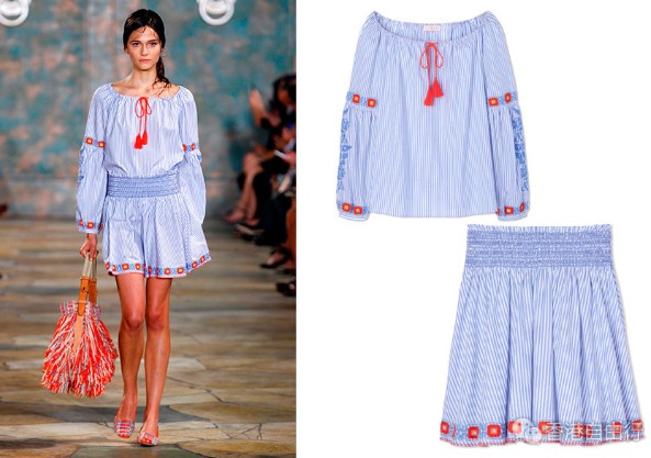 Tory Burch 2016年春夏系列以大自然的美为灵感,呈现强调鲜明的对比,以大胆的罂粟花红色和长春花蓝色作配搭,金盏花黄伴以绿色、卡其色、米色和粉红色,向大自然无限的色彩致敬。全新系列以招牌的束腰上衣(tunic)为今季主角,纤长的刺绣府绸配搭丰绕的金属提花布和穿孔皮革,加上精緻的褶绣和流苏,呈现波希米亚情怀。系列还有其他以玩味为主的露腰上衣和高腰裹裙、纤长的束腰上衣配衬宽管长裤、还有开领口的男性化衬衣。