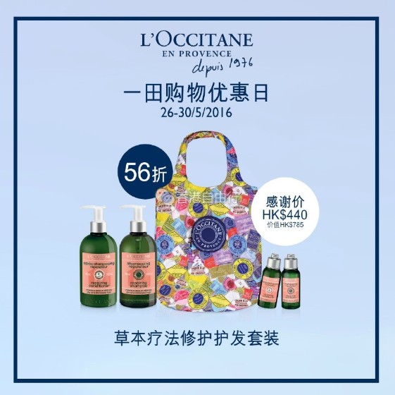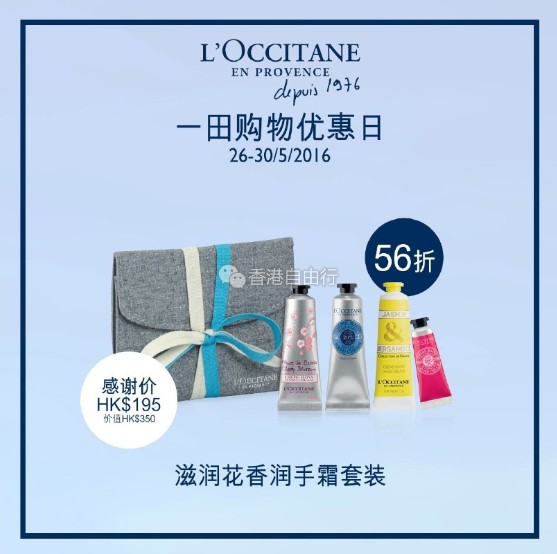 来了来了,5月26-30日期间,MM们来到一田百货(沙田)2楼欧舒丹美容专柜,购买任何正价产品2件或以上,即可获得9折优惠,还有多款优惠套装及赠品等着你