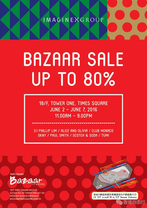 香港打折:时代广场IMAGINEX GROUP BAZAAR SALE低至2折优惠(至16年6月7日);