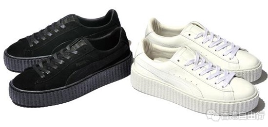 美国女歌手RIHANNA今季再度携手与PUMA合作,以个人旗下品牌FENTY名义展开联乘,推出由PUMA SUEDE变奏而成的CREEPER鞋履。黑白两色的设计分别用上浓黑麖皮及全白漆皮制作而成,就连厚身的鞋底都用以一体化的色调作为配合,加上蜡面涂层鞋带细节, 令原先带有叛逆风格的球鞋展现出与众不同的高阶造型。