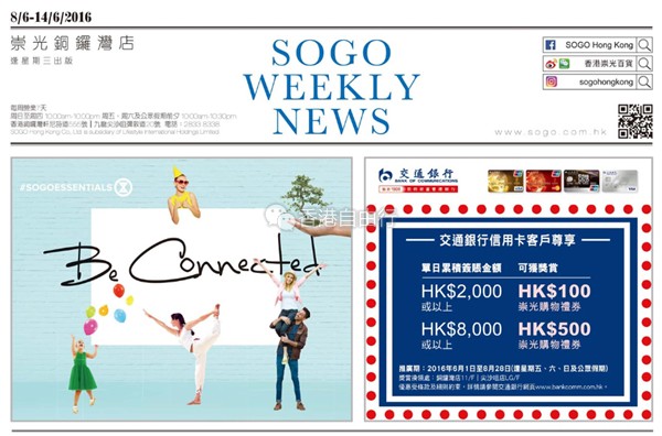 SOGO铜锣湾店本周最新优惠: