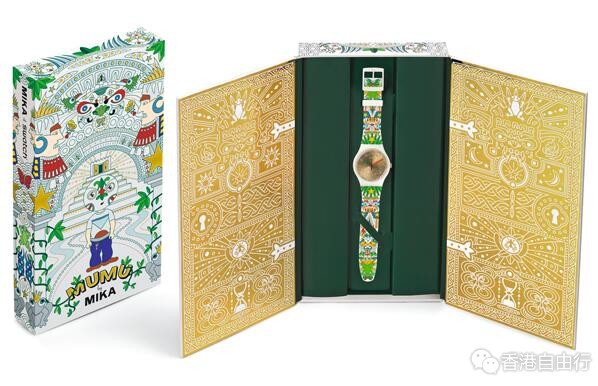 英国音乐才子MIKA与SWATCH可谓合作无间,继三年前携手推出民族风时计後,今年双方再下一城,并且延续民族风的理念,打造出名为MUMU-CUCURRUCUCU别注时计。MUMU是一名虚构人物,一个与青鞋王子、彩蝶与飞鸟一同生活在充满神秘标志和符号的奇幻世界的小男生。灵感启发自世界各地的原住民艺术,包括墨西哥、西班牙、葡萄牙及东方文化。MUMU-CUCURRUCUCU沿用了刻满神秘民族图案的金色表盘及布满鲜艳几何图形的表带,其限定特别版包装妙想天开的设计更让支持者犹如置身於MUMU的缤纷神秘国度。