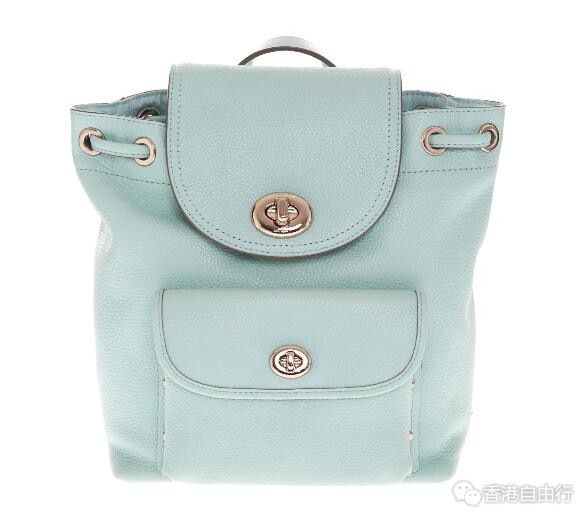 COACH粗纹皮革迷你旋扣背包(淡蓝色)