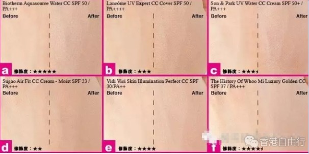 b/ 虽然修饰度未算突出,但CC 霜色泽接近肤色,效果自然。