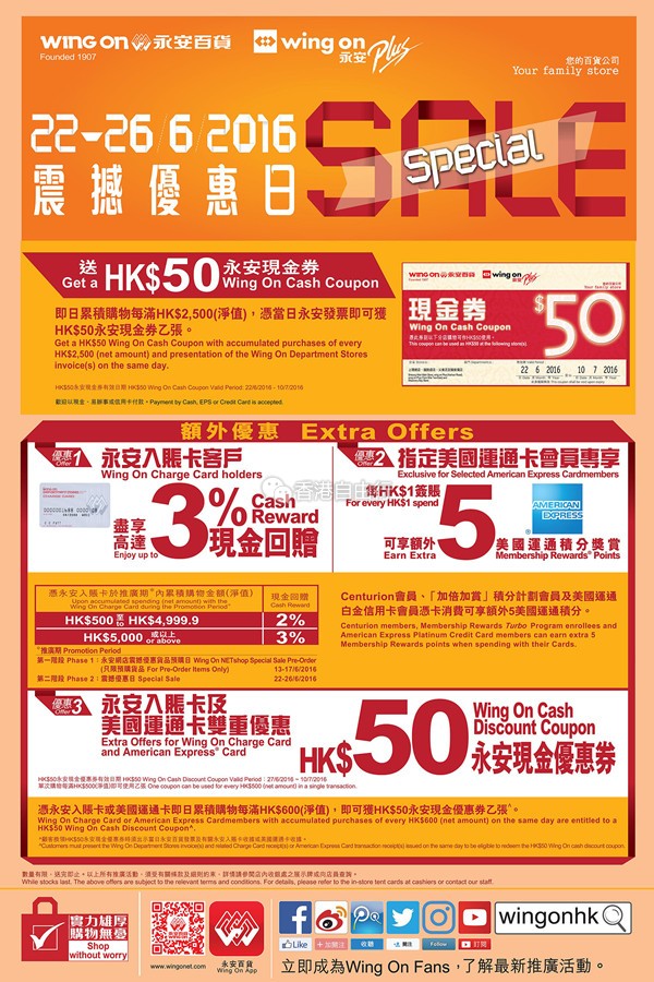 香港打折:永安百货震撼优惠日!美食、鞋履及手袋、男女服饰、旅行用品等折扣汇总