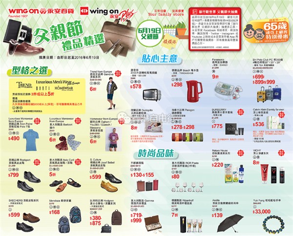 香港优惠:永安百货父亲节礼品精选Ⅲ及游泳用品展销(至7月11日)