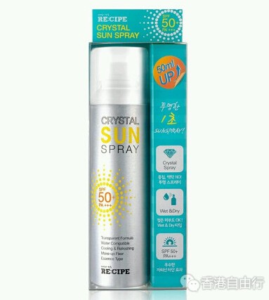 推荐理由:韩国超火的水晶防晒喷雾。防晒5星推荐,毫无油腻感,360度无死角喷雾~不含传统10种有害物质,并通过敏感性肌肤无过敏测试,防晒时间长达12小时,而且100%防水, 大汗淋漓、游戏水中,任何情况一切OK,喷身体,喷脸部,完全无乳液感,完全无油腻感,完全透明感!是不是太屌啦?化妆后使用不仅可以阻挡紫外线,还能起到定妆效果,瞬间冰爽就是它~夏天再也不怕晒黑晒伤了!完全就是赤裸裸的好评呀!啊哈哈哈~