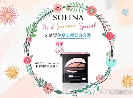 Mid-Summer Special❉SOFINA送您仲夏日眼影,在今夏大玩色彩!6月26日前,在香港SOFINA购买仲夏防晒美白套装,即获赠AUBE couture彩形明眸眼影组合一份!